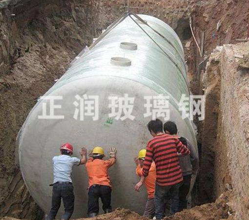 玻璃钢化粪池使用高分子材料与高强度玻璃钢纤维复合制成的圆筒型整体化粪池,与传统砖混化粪池相比,具有严密性好不渗漏、质量轻易于运输、抗压强度高、耐酸碱使用寿命长、安装快捷等优点。圆筒形化粪池有效利用体积大,筒体中及两端有T字型加强筋,两端外用车轮型封头,凹凸面设计。这种结构可以提高池体的强度及水压强度。池体上部设有进出水和清污孔,池内用膜隔仓分成一二级沉淀池和处理池三部分。隔舱板上设置有填充污水处理填料的填料箱,填料为具有弹性的维纶丝束。生活污水从化粪池上部进水口进入池体中1级沉淀池,比重大的部分沉入池底进行化粪处理,比重小的部分漂浮于水面上层,可从清污孔捞出,上层污水经隔舱板上安装的填料箱侧面污水通道环流进入填料箱,与其悬挂式水处理填料富集的微生物接触,使水中的有机物降解。由于改直流泛水为环流泛水化粪原理,污水在池体中增长了滞留时间,污水与填料的接触降解时间更长,有机物降解程度更高,从而使排出的污水中BOD指标大大降低。